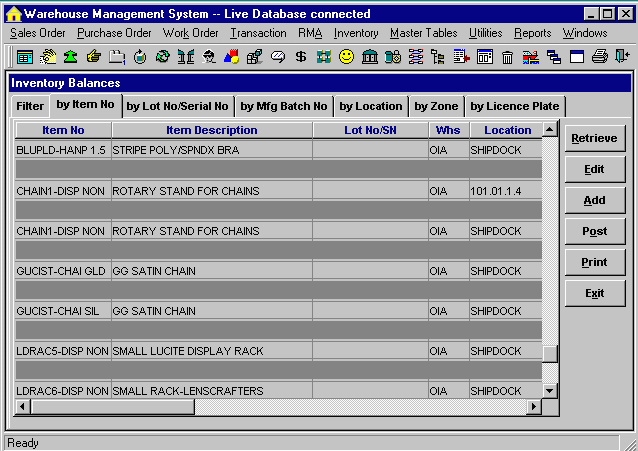 Asset Inventory Management No need to spend a tremendous amount of time searching through storage areas for specific items that may or may not be there, or wasting your investment on purchasing new equipment to replace items that you could not locate. Warehouse 2000 - Asset Manager quickly gives you complete visibility of your asset inventory, at every location within your organization. Each item is tracked by its unique ID, from the time it is received to the time it is issued to a department, a customer, or an employee. Asset Manager also tracks each request by a Reference number, Work Order number, or an Event. Minimum / Maximum inventory levels, and on-hand quantities will be maintained for each product type, which enables you to minimize your inventory investments and still meet your customer's demands.